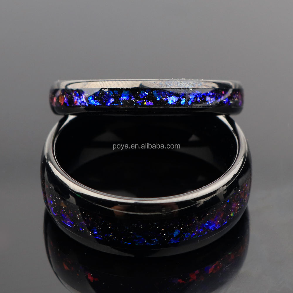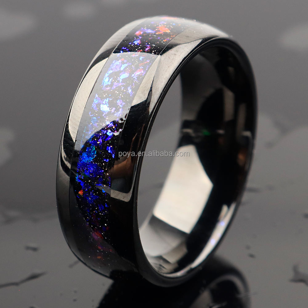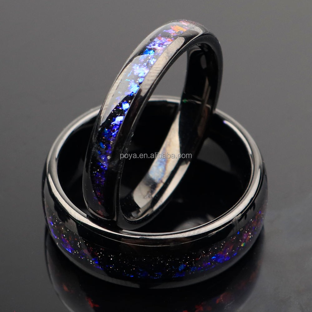 Alibaba listing: The ring described—“POYA Nebula Couple Rings 8mm 6mm Black Polished Dome Tungsten Wedding Ring for Men Comfort Fit Purple Band”—is available on Alibaba. It's priced between US $5.50 to $7.00 per ring, with a minimum order quantity of 2 pieces.Alibaba